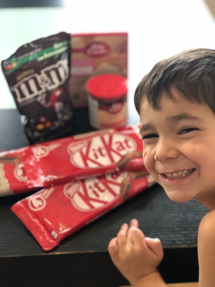 Today is my birthday, hurray!!! I’ve never been one to get upset about getting older. Call me crazy but I think it’s a blessing. Anyway, Rivera couldn’t wait to bake me a cake. And not just any cake. This best ever kit kat cake! Hes my youngest boy at 5 years old, and his energy and zest for life make me so happy. How could I say no. That and it involved lots and lots of chocolate, so really how could I say no?